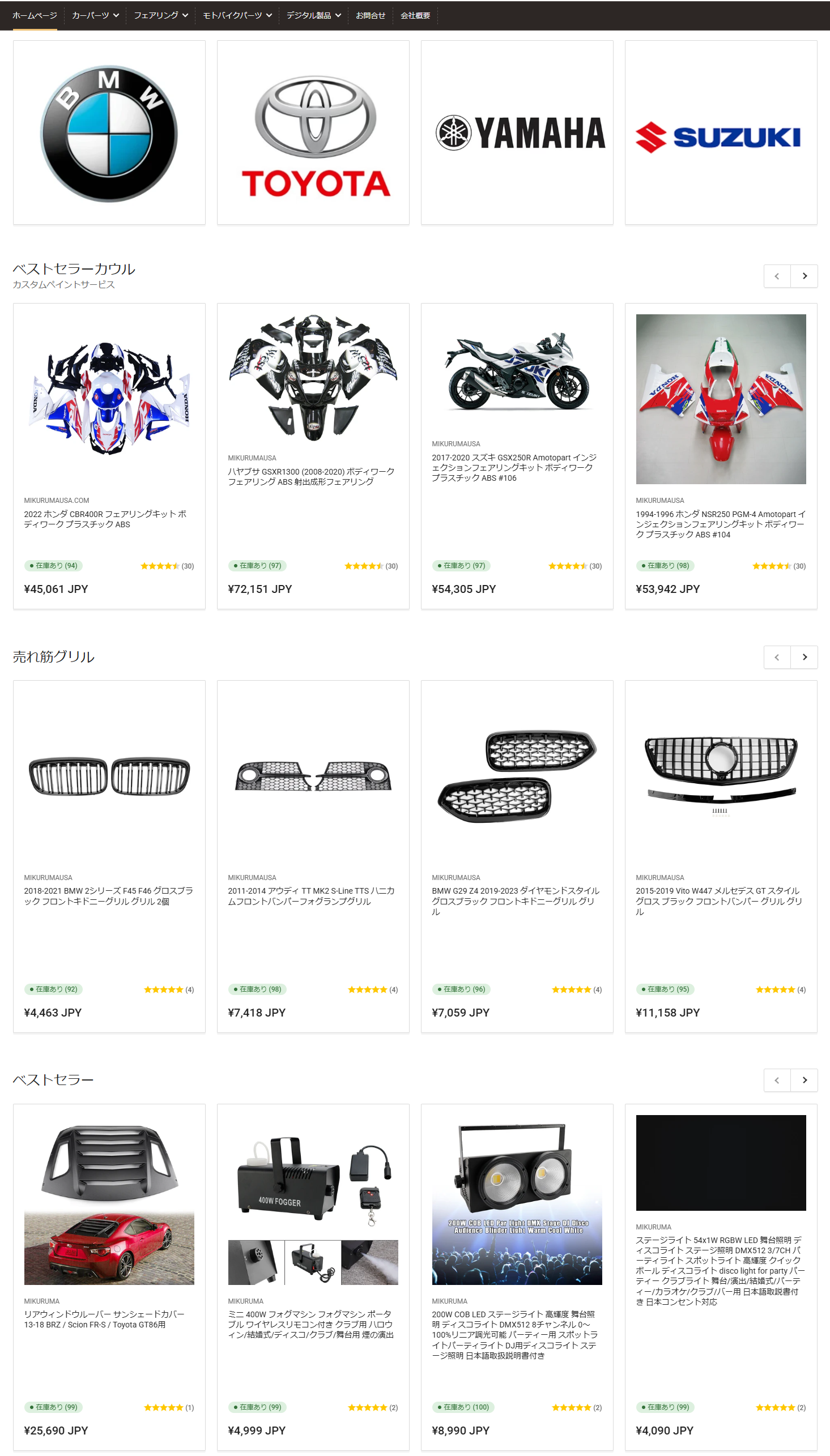 / 車・バイク MIKURUMA 詳細はこちら アメリカを拠点とし、日本市場向けに日本製自動車およびオートバイの部品を専門に販売する企業です。当社は、日本車およびオートバイの性能を引き出すための高品質なパーツを提供し、愛車のメンテナンスやカスタマイズをサポートしています。