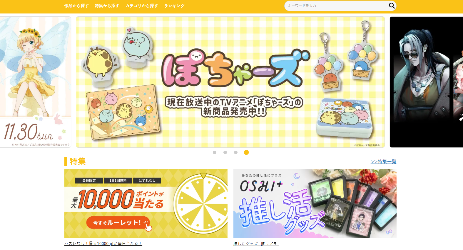 「毎日の推しごとをもっと夢中に、もっと楽しく彩る」をコンセプトに、 人気作品はもちろん新作〜長く愛される作品まで、1万点以上の豊富なアイテムをご用意。