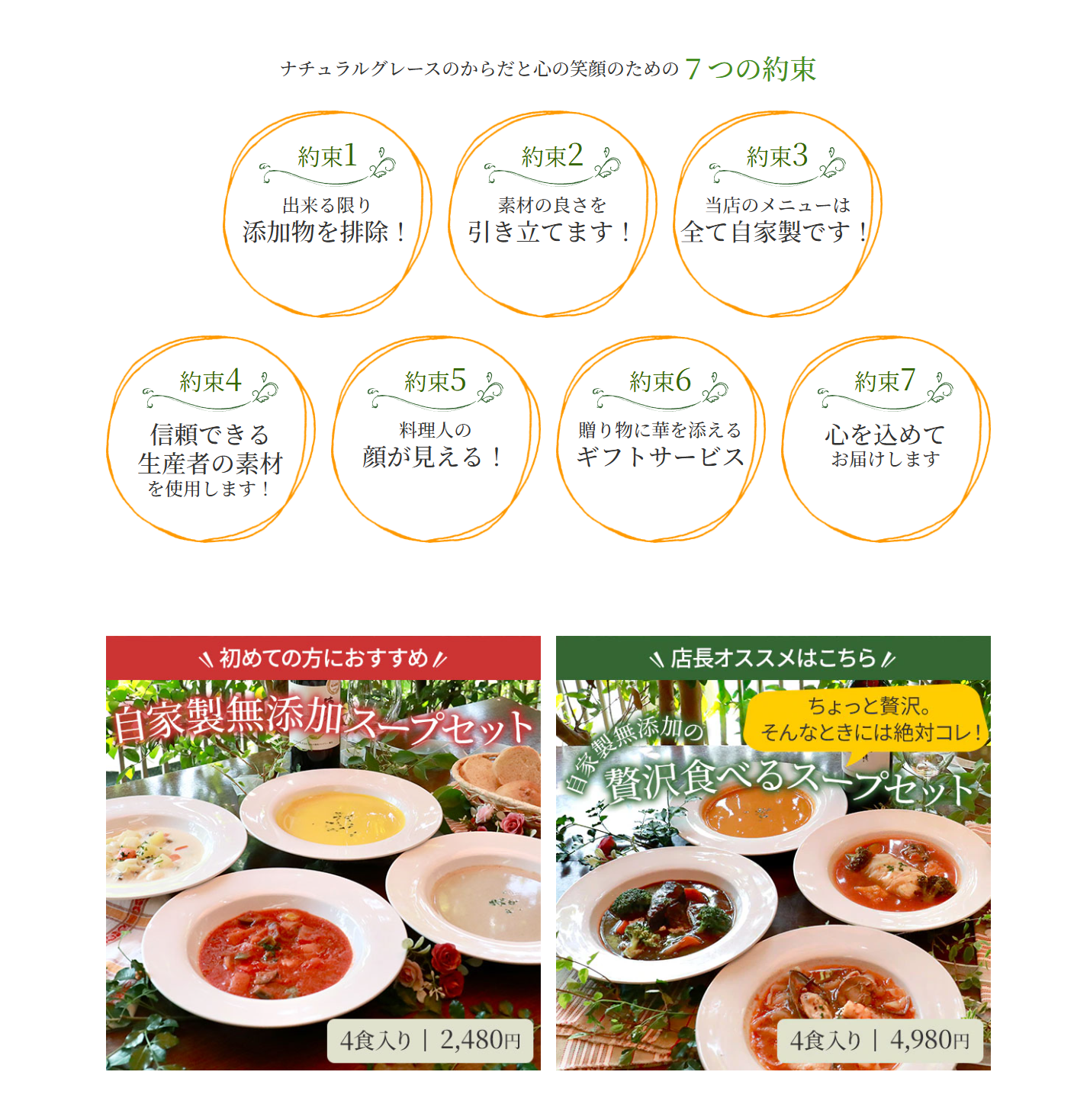 / 加工食品 ナチュラルグレース 詳細はこちら 山梨県甲府市で30年以上、素材にこだわるレストランとして愛され続ける同店が 化学調味料・保存料不使用の“レストラン品質スープ”を全国へ直送します。 具材がしっかり入った主食系スープは、一般的な“飲むスープギフト”との差別化ポイントとして人気。 さらに、このジャンルは近年「スープギフト」「母の日スープ」「無添加ギフト」カテゴリー で検索ボリュームも多く、アフィリエイト案件としても参入しやすい市場です。