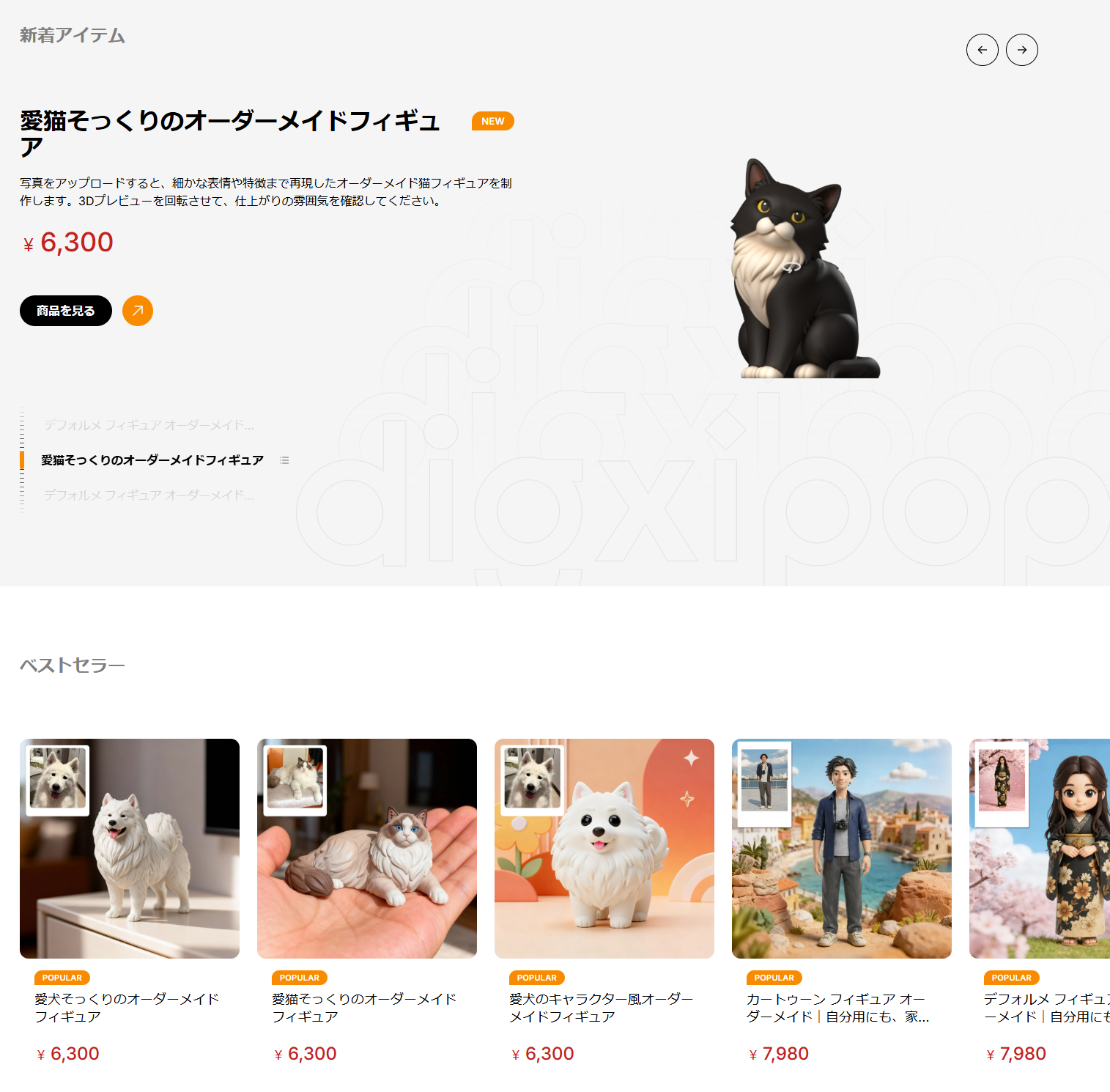 「digxipop」は、写真をアップロードするだけで、AI技術と高品質な3Dプリントにより 驚くほどリアルで愛らしいオーダーメイドフィギュアを制作できるサービスです。